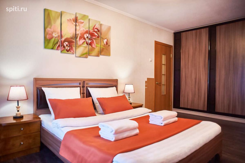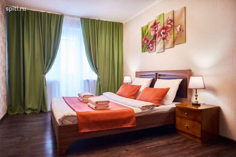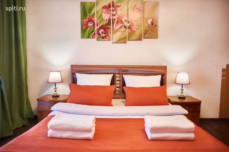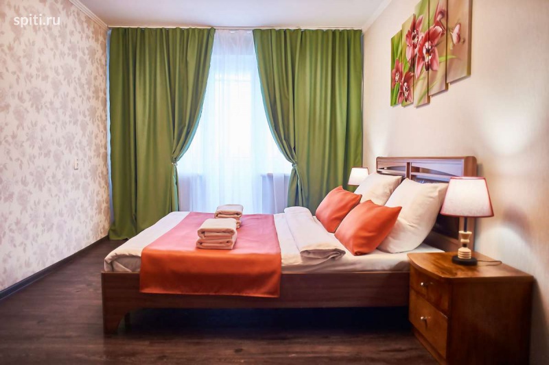 Романтичная, яркая, стильная квартира с новым ремонтом в центре Описание квартиры посуточно в Магнитогорске по улице Бориса Ручьева 12: ✔ Гостевая квартира Пять Звезд - Магнитогорск понравится каждому гостю благодаря таким преимуществам как раздельные комнаты, свежий ремонт, качественная нестандартная мебель, современная бытовая и сантехника, расположение в шаговой доступности от всей инфраструктуры. ✔ В восхитительной спальне романтический стиль с нежными цветочными мотивами. Двуспальная кровать оснащена ортопедическим матрасом, что обеспечит качественный сон. Для удобства предусмотрены прикроватные тумбы со светильниками. Во вместительном шкафу-купе можно расположить все вещи. Дополнительные шкафы есть в коридоре. ✔ В колоритной гостиной удобный угловой диван легко трансформируется в полноценное двуспальное место. Для комфортного отдыха гостей есть большой ЖК-телевизор, журнальный стол. ✔ Просторная кухня гарантирует удовольствие не только от приятной домашней трапезы, но и от приготовления пищи на свой вкус. Ведь помимо красивого современного кухонного гарнитура имеется вся нужная бытовая техника и полный комплект разнообразной посуды по числу персон гостей. ✔ Санузел в квартире раздельный. Оснащен новой белоснежной сантехникой. Установлена современная душевая кабина. Для удобства гостей в вопросе личного ухода предусмотрено все: от стиральной машины-автомат до фена и прочих мелочей. Что находится РЯДОМ: Во дворе Магнит Пятёрочка и рядом КБ, через дорогу театр Буратино, напротив него большой парк. В пяти минутах ходьбы сквер 50 лет Победы, напротив дома аптека, сбербанк, почта и кулинария. Почему гости отдают предпочтение нашим квартирам: - уютно как дома; - выглаженное белоснежное постельное белье из качественного материала; - махровые полотенца банные и для лица; - действительно чистые квартиры; - высокоскоростной WI-FI; - посуда, кухонные приборы и принадлежности для приготовления пищи по своему вкусу;