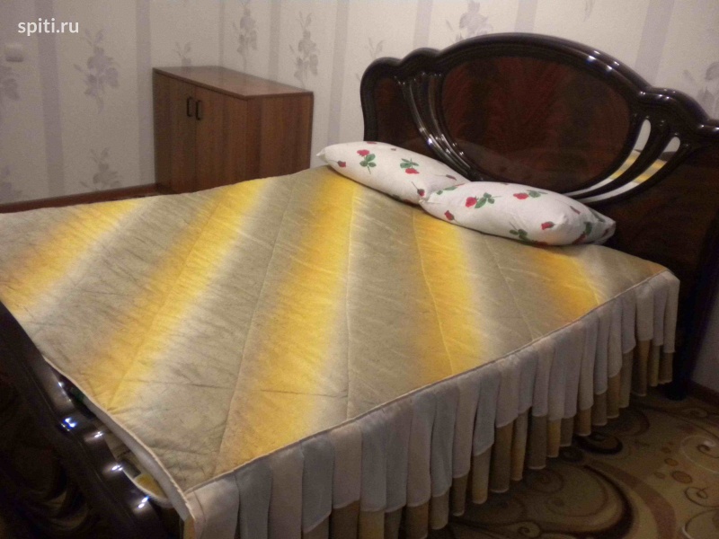 Двухкомнатная квартира в новых районах, обставлена мебелью и необходимой бытовой техникой. Коридор и ванна выложены кафелем. Ванна и сан.узел совмещены. В комнатах ковровое покрытие. Рассчитана на 1-5 человек. Спальные места в комплектации 2+2+1 Двуспальная кровать, раздвижной диван. Кабельное ТВ, интернет. Холодильник, газовая плита, эл. Чайник, стиральная машинка.