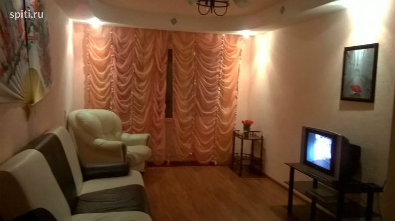 Мебель: кожанный мягкий уголок, шкаф-купе, журнальный столик, серверовочный столик, двухспальная кровать, кухонный гарнитур. Техника: холодильник 185см., СВЧ печь, газовая плита, эл. чайник, стиральная машинка, утюг, фен. В квартире четыре спальных места. Есть интернет и кабельное ТВ. Квартира с отдельным тамбуром без соседий (отделан евровагонкой), большой холл (9 м2), раздельный сан. узел., лоджия Квартира улучшенной планировки находится на 5 этаже 9 этажного дома. Предоставляютс все отчетные документы. При длительном проживании уборка и смена белья 1 раз в неделю, а так же по желанию клиентов организация трансферов, покупка продуктов, приготовление ужинов, организация романтических вечеров. Всегда в наличии чай, кофе, сахар. Не для шумных компаний.
